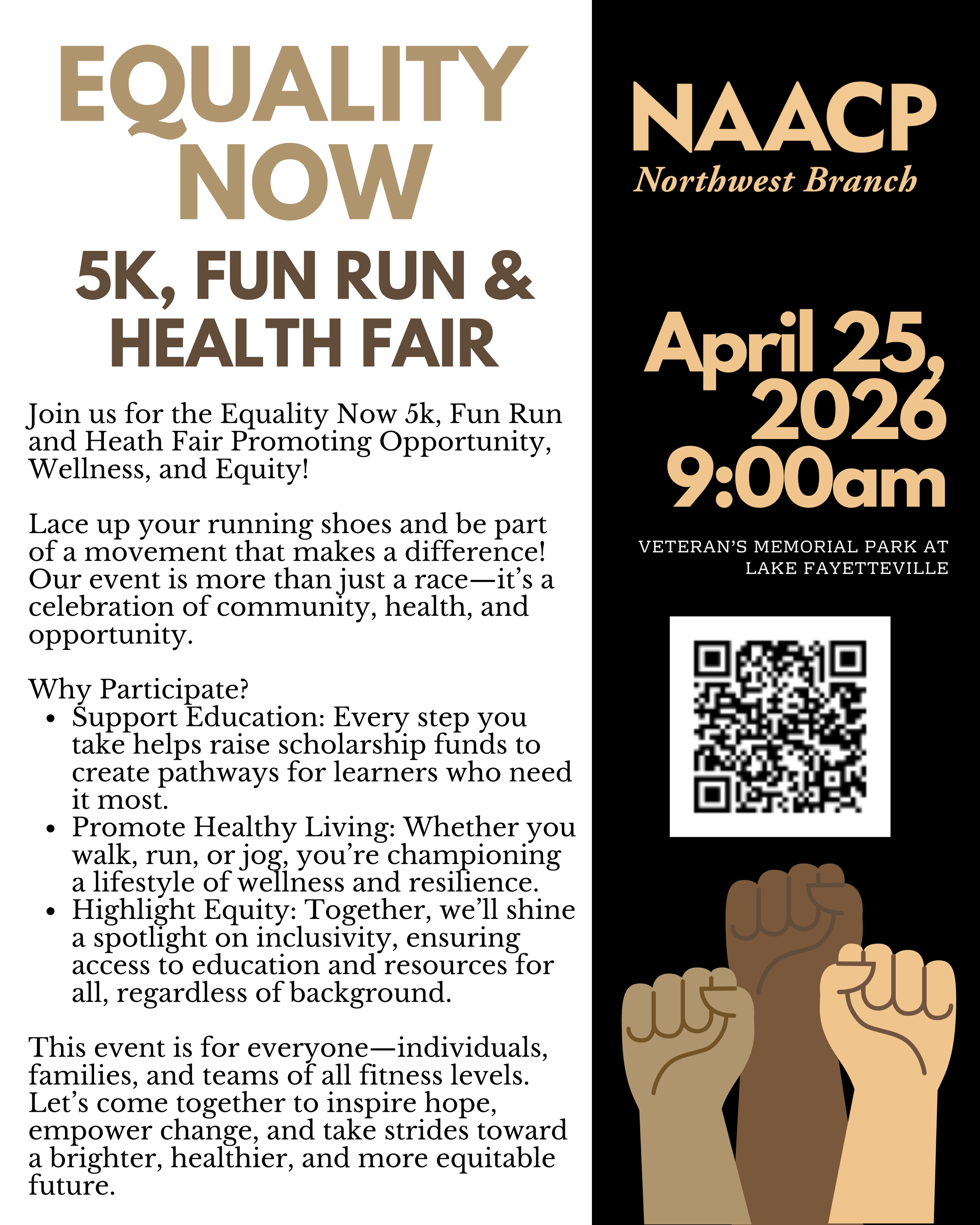 Join us for the Equality Now 5k, Fun Run and Heath Fair promoting opportunity, wellness and equity!
